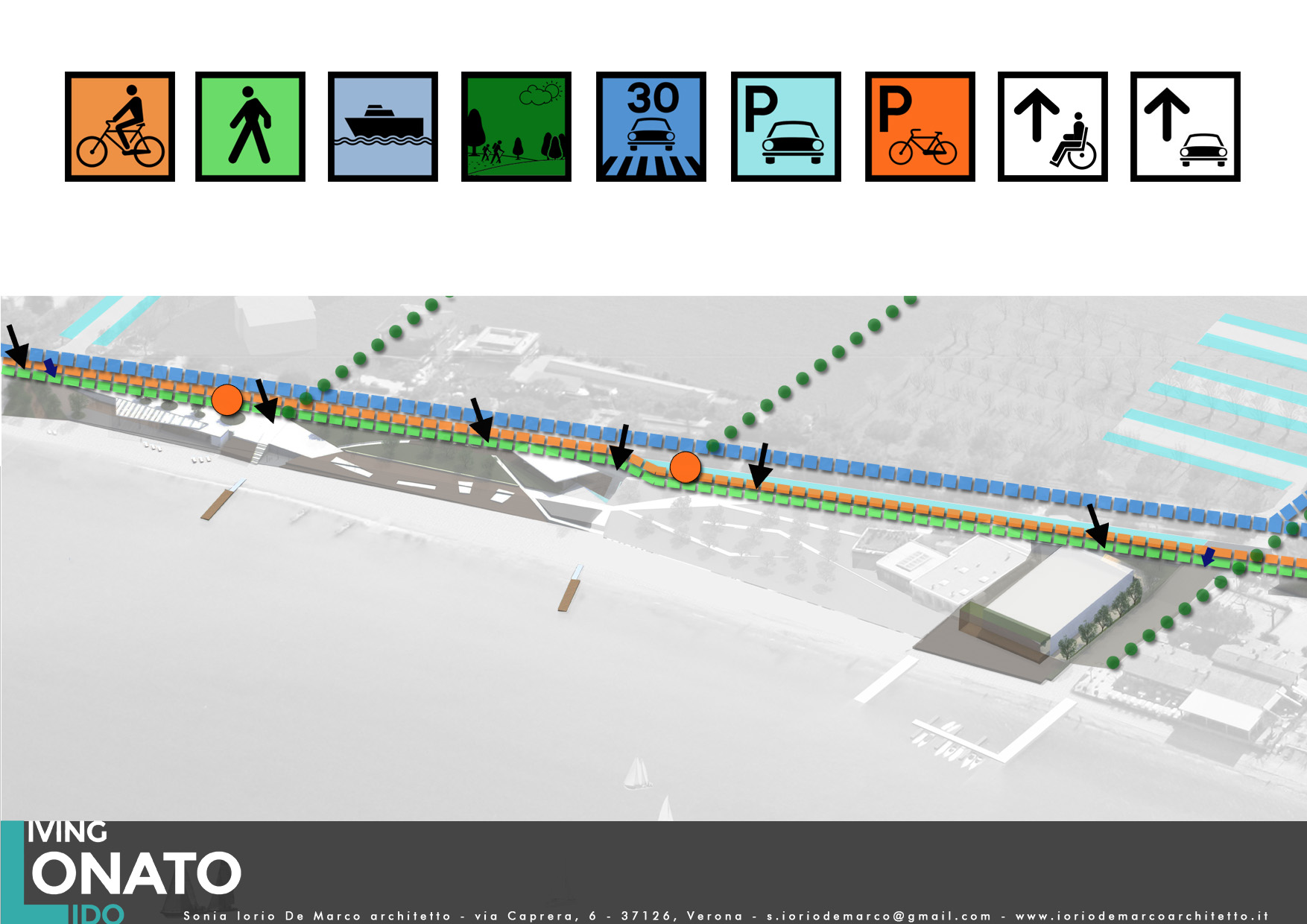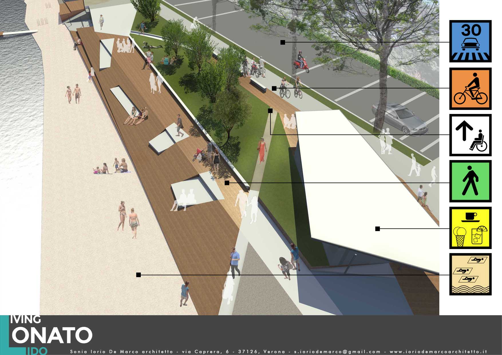 Il luogo dove si articola l’intervento parla di un lago; parla il linguaggio delle colline moreniche con le articolazioni morfologiche e i caratteristici filari di alberi; parla di un abbazia, quella di Maguzzano, che vigila a distanza e che il progetto non può dimenticare in quanto memoria storica del luogo stesso; parla del Monte Corno che si specchia sul golfo naturale del lido e che insieme al lago costituisce lo sfondo del progetto; parla di tutta quella gente che pur avendo questo bel luogo nella memoria oggi, di fronte allo stato di abbandono, non vi si riconosce più.