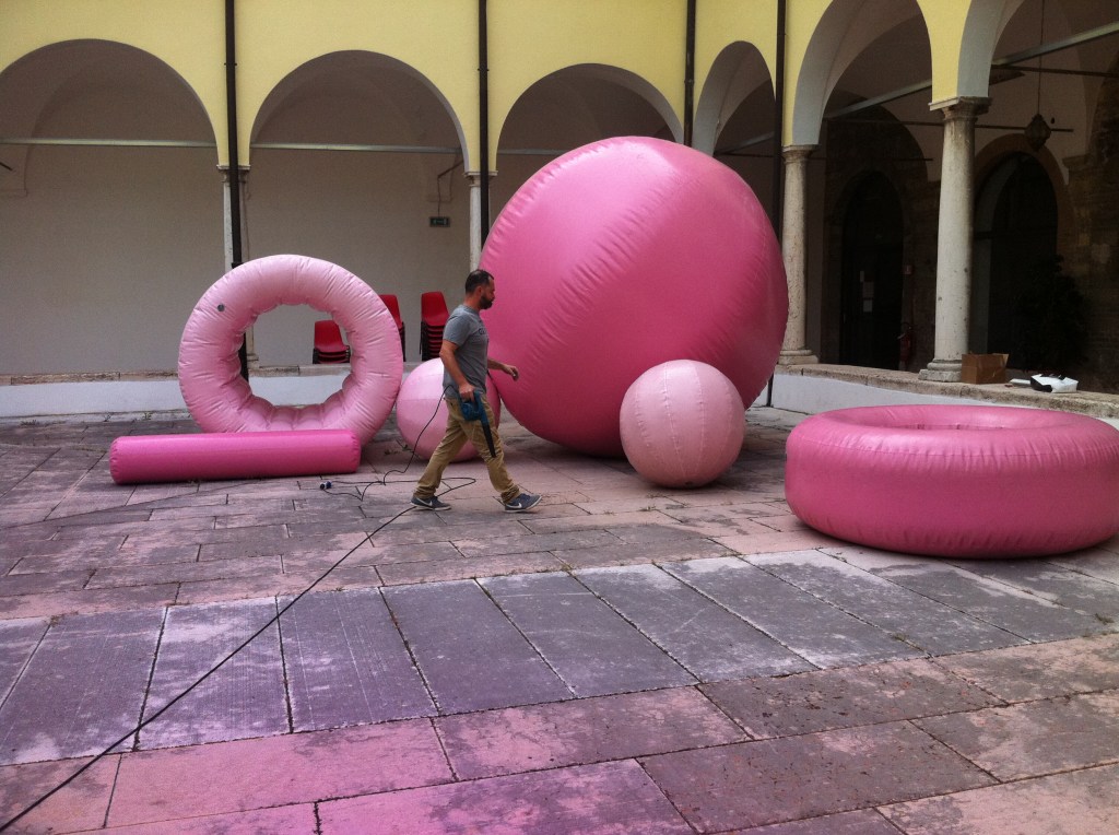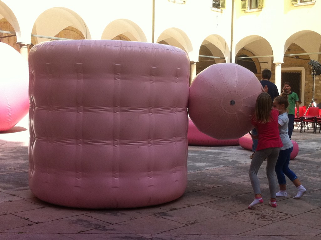 L.A.C. Verona e A.G.A. presentano la conferenza di TOPOTEK 1, studio berlinese di architettura del paesaggio che ci propone anche un’installazione visiva ed artistica dove le regole del gioco sono dettate dall’interazione fra utente ed oggetti gonfiabili che all’istante alterano lo spazio, trasformando ogni contesto in una provocativa esperienza tattile molto ricca. La persona si trova in questo stravagante campo di oggetti rosa, giardino senza radici, ed è parte integrante del progetto.